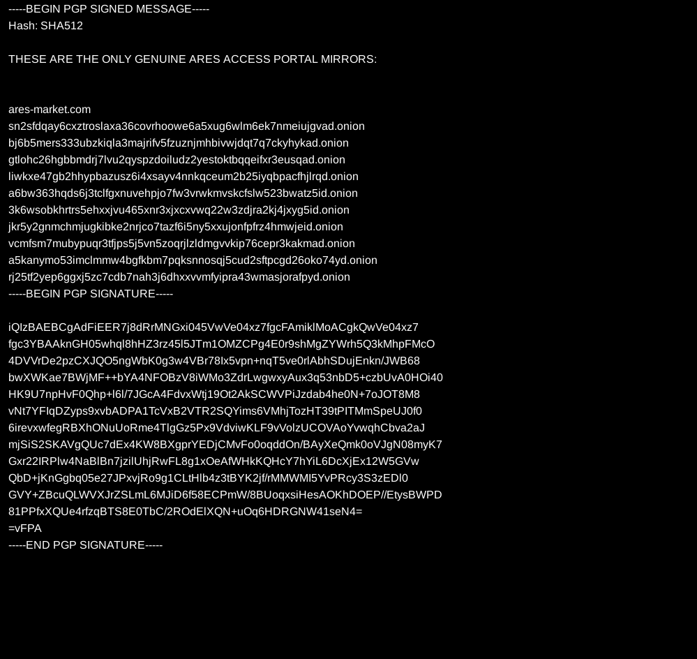 The genuine Ares Market links below are only accessible by using TOR Browser.